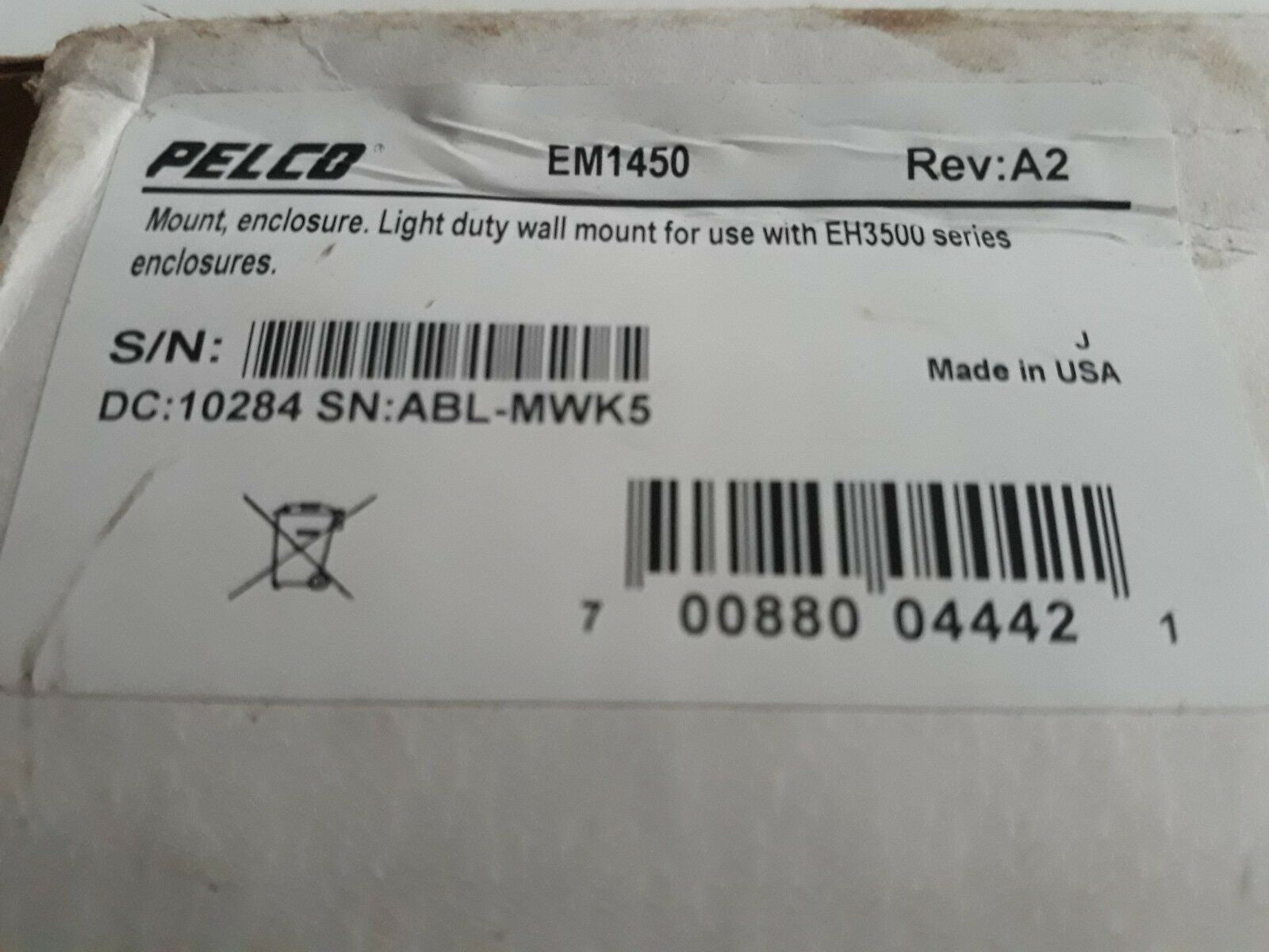 Pelco EM1450 Wall Mount for Eh3500 Series Enclosure