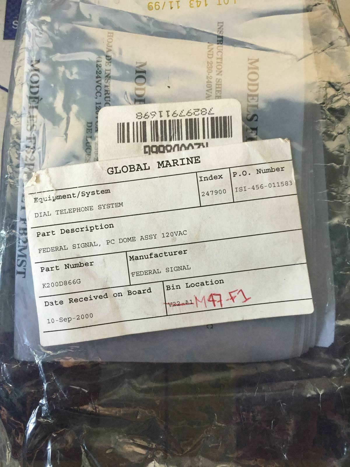 FEDERAL SIGNAL PC DOME ASSY 120VAC K200D866G DIAL TELEPHONE SYSTEM