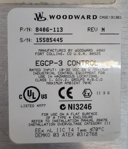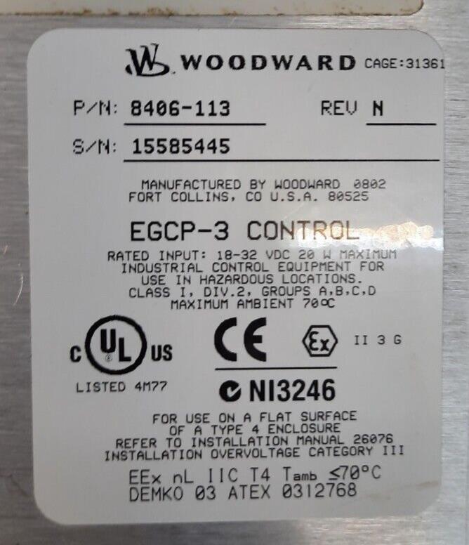 WOODWARD EGCP-3 DIGITAL CONTROL 8406-113